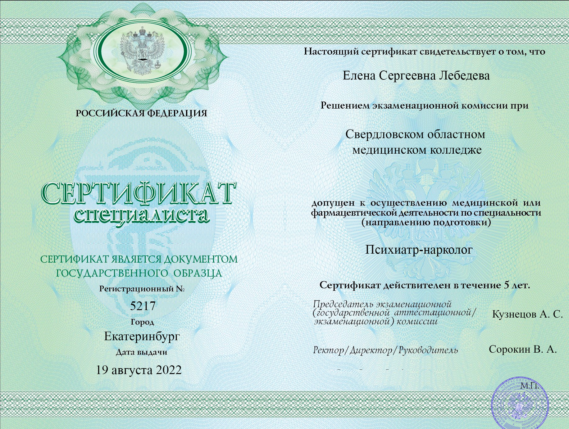 Елена Сергеевна Лебедева врач нарколог клиники доктора Стукаловой в Ольгинке